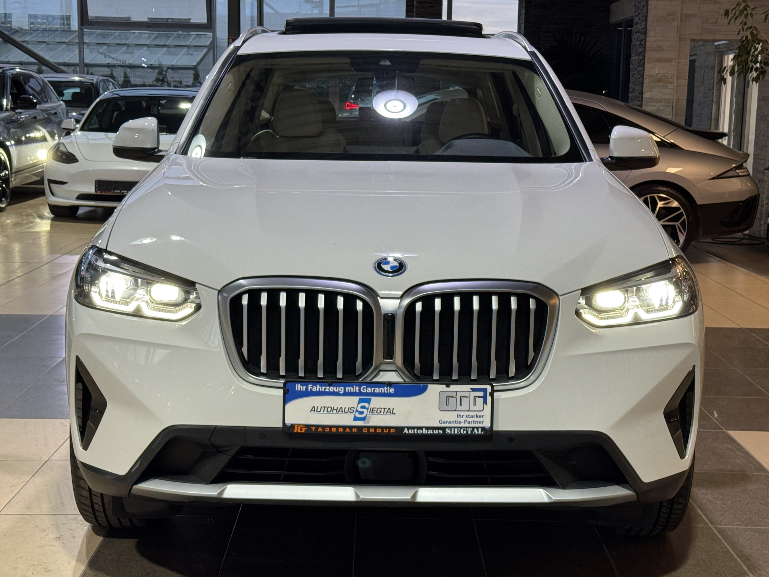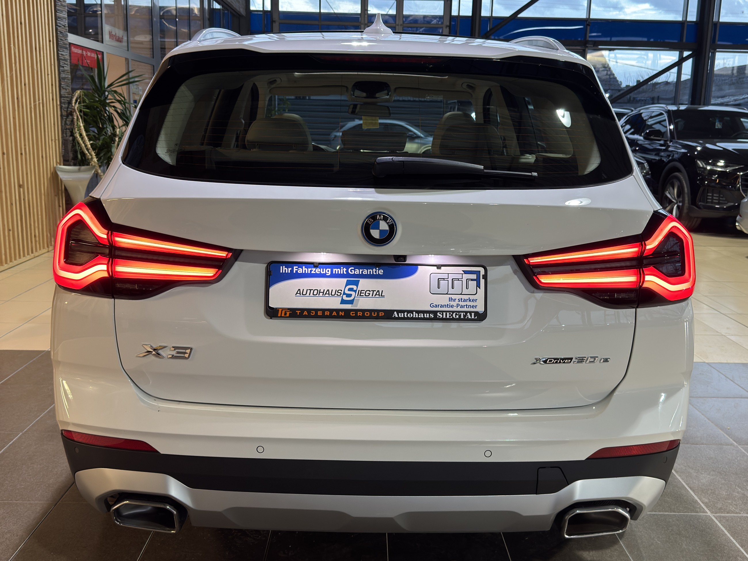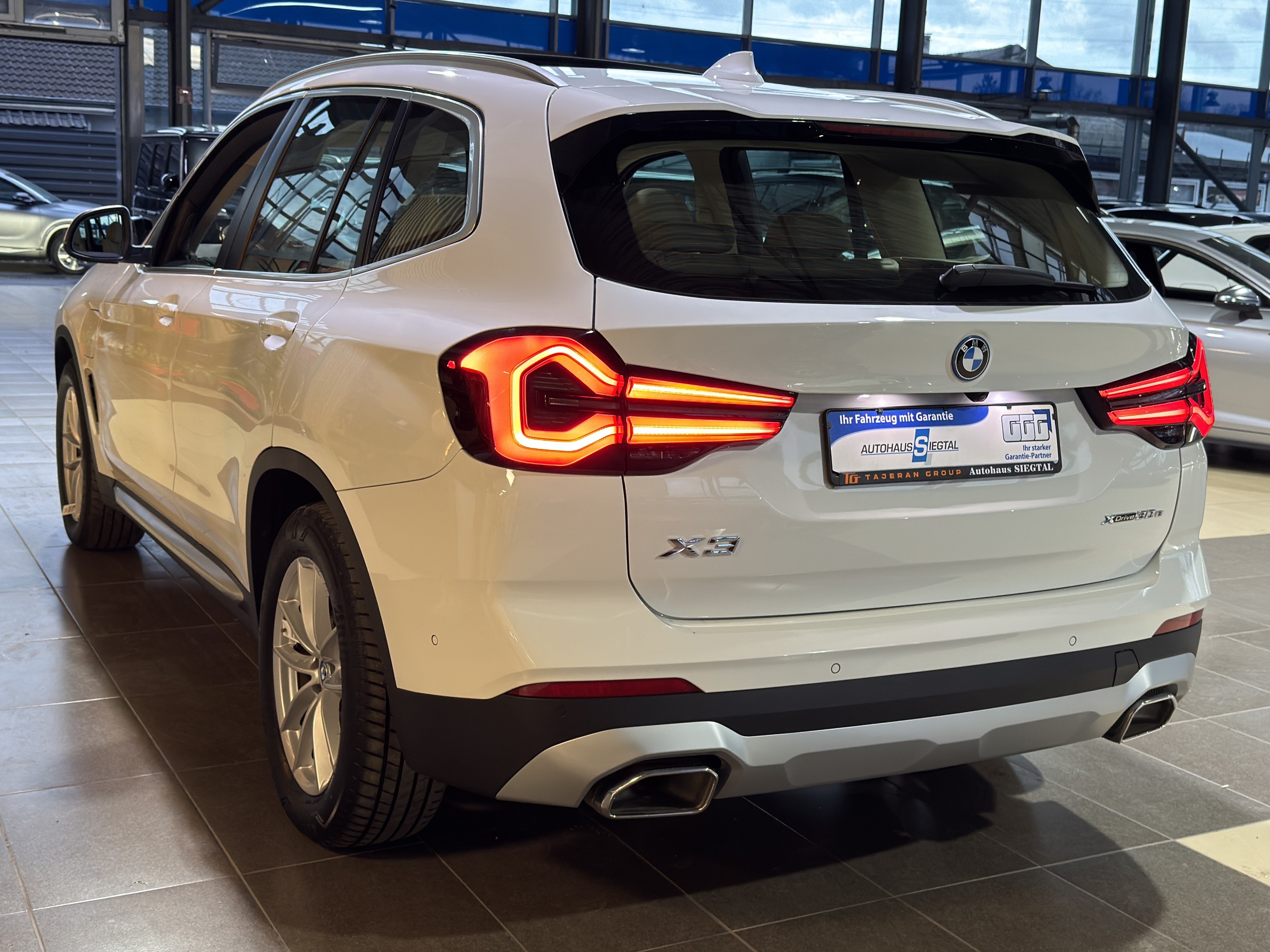 Pakete Parkassistent-Paket Ausstattungs-Paket: Connected Professional Fahrassistenz-Systeme Fahrassistenz-System: Driving Assistant Fahrassistenz-System: Active Guard (Bremsassistent) Fahrassistenz-System: Auffahrwarnsystem mit Bremsfunktion Fahrassistenz-System: Fahrerlebnisschalter Highlights Panoramadach (Glas) Sound-System Harman-Kardon Sitzheizung vorn Sportsitze vorn Heckleuchten LED Park-Distance-Control (PDC) vorn und hinten Klimaautomatik 3-Zonen mit autom. Umluft-Control Geschwindigkeits-Regelanlage, Aktiv mit Stop&Go-Funktion Außenspiegel elektr. anklappbar, alle Spiegel mit Abblendautomatik Weitere Ausstattung Alpinweiß-Lackierung (Uni) Bedienelemente galvanisiert DAB-Tuner (Radioempfang digital) Airbag Beifahrerseite abschaltbar Airbag Fahrer-/Beifahrerseite Akustischer Fußgängerschutz (Außensound) Anti-Blockier-System (ABS) Antriebsart: Allradantrieb Armauflage vorn Audiosystem: Radio (BMW) Auspuffanlage (2-Rohr-Anlage, links/rechts) mit Chromblenden Außenspiegel elektr. verstell- und heizbar BMW Live Cockpit Plus Bordcomputer Bremsassistent Bremsenergierückgewinnung (Rekuperationssystem) Diebstahlsicherung für Räder (Felgenschlösser) Durchladeeinrichtung (Mittelarmlehne hinten) Dynamische Bremsleuchte Dynamische Stabilitäts-Control (DSC) Dynamische Tractions Control (DTC) Elektromotor 80 kW (Hybridantrieb) Fensterheber elektrisch Freisprecheinrichtung mit USB-Schnittstelle Gepäckraum-Abtrennung (Netz) Geschwindigkeits-Regelanlage mit Bremsfunktion Getriebe Automatik - mit Steptronic (8-Stufen) Getränkehalter vorn und hinten Heckklappenbetätigung automatisch Innenausstattung: Interieurleisten schwarz hochglänzend mit Akzentleiste Innenspiegel mit Abblendautomatik Isofix-Aufnahmen für Kindersitz an Rücksitz Karosserie: 5-türig Kopf-Airbag-System hinten Kopf-Airbag-System vorn Lenkrad (Sport/Leder) mit Multifunktion Lenksäule (Lenkrad) mechan. verstellbar Licht- und Regensensor LM-Felgen Mittelarmlehne hinten Modellpflege Motor 2,0 Ltr. - 135 kW (System: 215 kW) Hybrid (B48) Nebelschlussleuchte Otto-Partikelfilter (OPF) Parkbremse elektrisch Personalisierungssystem (Personal Profile) Reifendruck-Kontrollsystem Rücksitzlehne geteilt/klappbar (40:20:40) Schadstoffarm nach Abgasnorm Euro 6d Scheibenwaschdüsen heizbar Seitenairbag hinten Seitenairbag vorn Service-System: Concierge Services Service-System: ConnectedDrive Services Service-System: eDrive Services Service-System: Intelligenter Notruf inkl. TeleServices Service-System: Real Time Traffic Information (RTTI) Service-System: Remote Services Servolenkung Servotronic Sitzbezug / Polsterung: Stoff Sensatec Tagfahrlicht LED WLAN-Hotspot Wärmeschutzverglasung Autohaus Siegtal GmbH in 53783 Eitorf - Tel.: 02243 - 847 500