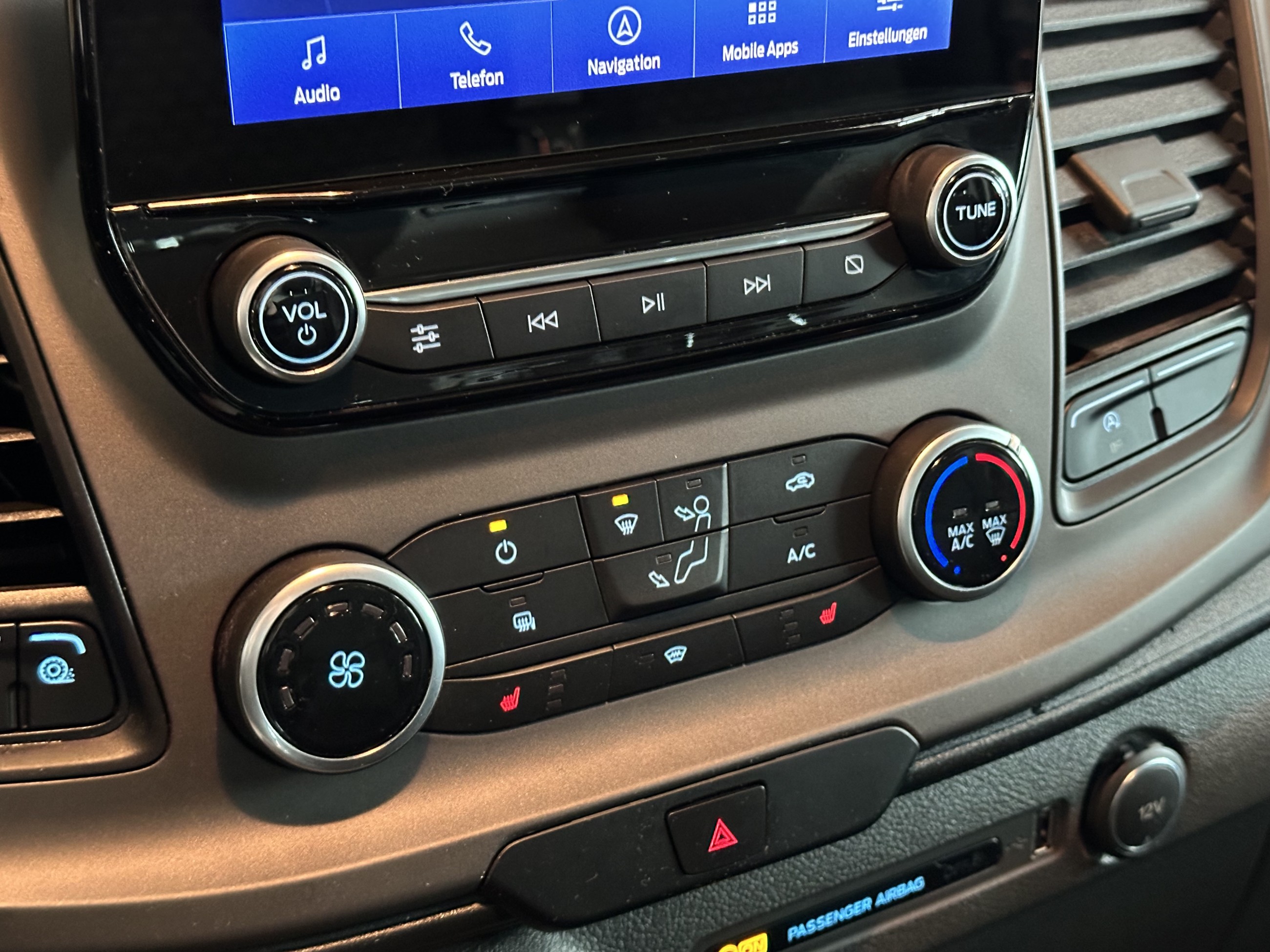 Highlights Sicht-Paket 1 Sitz-Paket 9 / 15 – Fahrersitz (4-fach verstellbar) – Beifahrerdoppelsitz inkl. Sitzheizung, Stoff Style-Farb-Paket Fahrassistenz-Systeme Fahrassistenz-System: Berganfahr-Assistent Fahrassistenz-System: Seitenwind-Assistent Weitere Ausstattung Airbag Beifahrerseite Airbag Fahrerseite Anhängerkupplung: Kugelkopf fest Audiosystem 24/25: Navigationssystem inkl. SYNC 3 mit AppLink und 8'' Multifunktionsdisplay Ford SYNC 3 Diebstahl-Warnanlage Fenster in Schiebetür rechts, feststehend Generator 240 A Laderaumleuchte LED Rückfahrkamera mit Farbdisplay Start/Stop-Anlage Steckdose 12V im Lade-/Fahrgastraum Steckdose 230V / 150 Watt Abbiegelicht im Scheinwerfer Anhänger-Stabilisierungs-Programm (TSA) Anti-Blockier-System (ABS) Antriebs-Schlupfregelung (ASR) Antriebsart: Frontantrieb Audiosystem: Radio mit USB und Bluetooth-Freisprecheinrichtung Außenspiegel elektr. verstell- und heizbar Blinkleuchte in Außenspiegel integriert Bordcomputer Einstiegsleuchten Elektr. Bremskraftverteilung (EBD) Elektron. Stabilitäts-Programm (ESP) Elektron. Traktionskontrolle Fensterheber elektrisch Geschwindigkeits-Regelanlage (Tempomat) Getriebe 6-Gang Handschuhfach abschließbar Heckflügeltüren ohne Verglasung (Öffnungswinkel 180 Grad) Innenleuchten im Fahrerhaus: Leseleuchte vorn Karosserie/Aufbau: Kasten Hochraum Standard Karosserievariante: Mittelhohes Dach Klimaanlage Kühlergrill schwarz grau Laderaumtrennwand hoch hinter Fahrer und Beifahrer, ohne Fenster mit Durchlademöglichkeit unten Lenksäule (Lenkrad) höhen-/längsverstellbar Modellpflege Motor 2,0 Ltr. - 96 kW TDCi KAT Parkpilotsystem Parkpilotsystem vorn und hinten Radioempfang Digital (DAB+) Radstand 3300 mm Rußpartikelfilter Schadstoffarm nach Abgasnorm Euro 6d Scheibenwischer mit Intervallschaltung, regulierbar Schiebetür Lade-/Fahrgastraum rechts Stahlfelgen 6,5x16 Tagfahrlicht LED Trend Verglasung getönt Verkleidung im Lade-/FG-Raum: halbhoch Verzurrschienen seitlich im Laderaum Wegfahrsperre Zentralverriegelung mit Fernbedienung Zusatzheizung elektrisch Autohaus Siegtal GmbH in 53783 Eitorf - Tel.: 02243 - 847 500