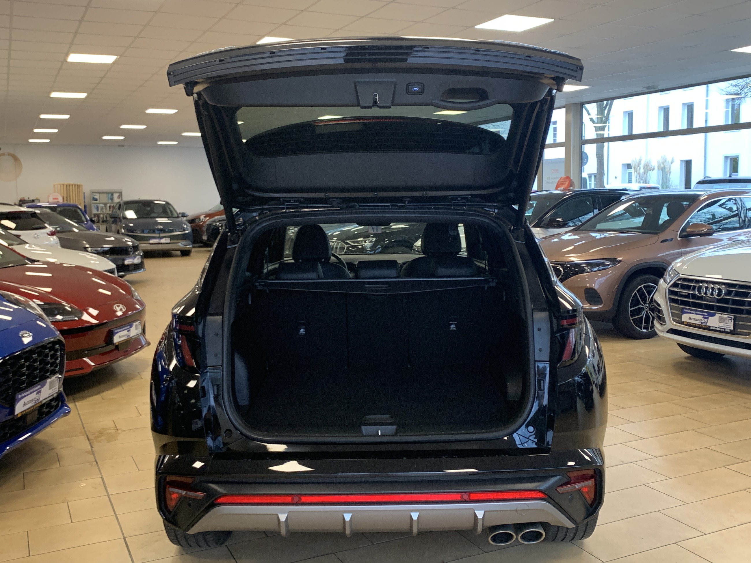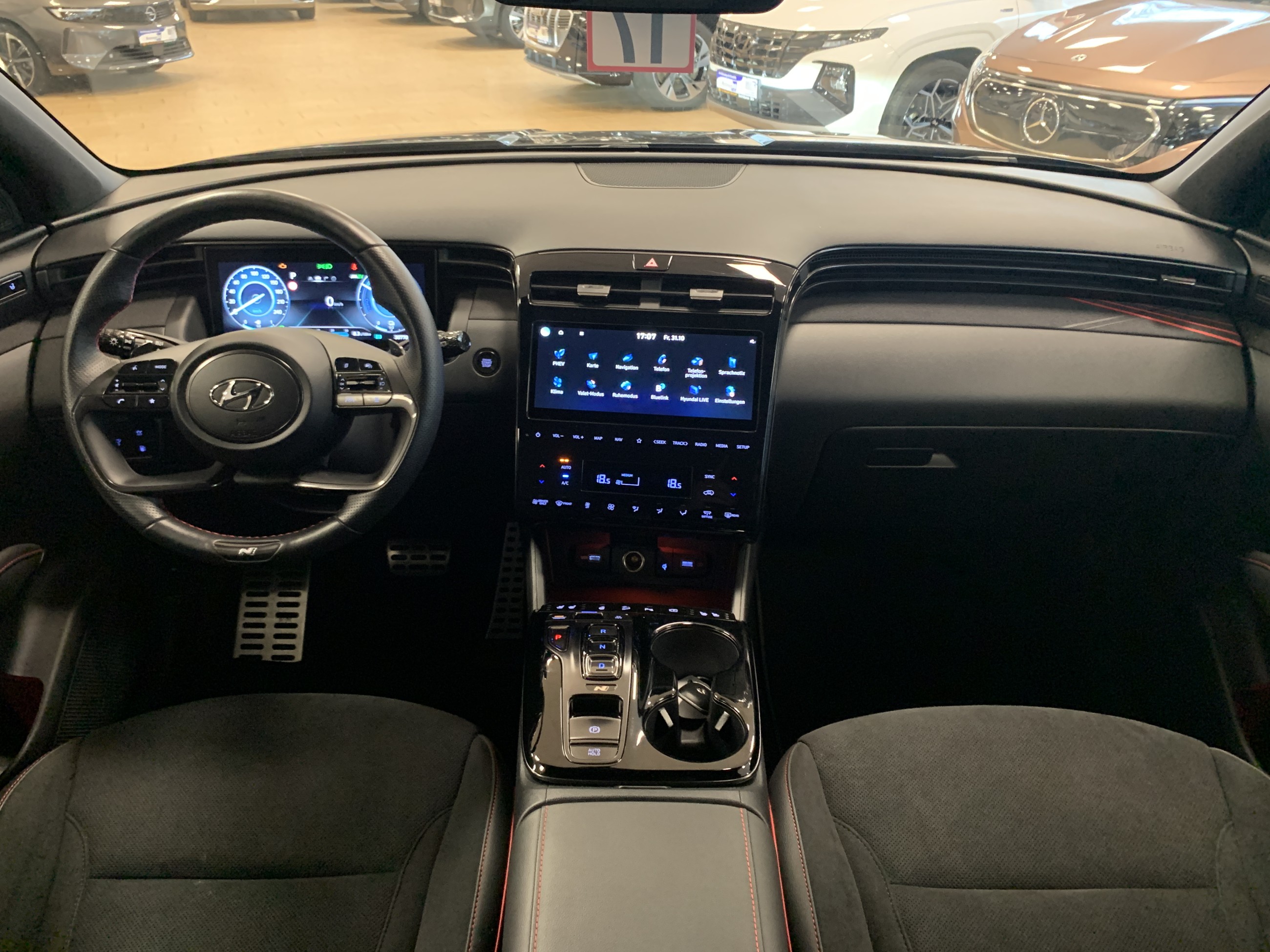 Pakete• Assistenz-Paket• Funktions-Paket• Navigations-Paket• N-Line-Paket• Sitz-Paket• Smart-Sense-Plus-Paket Sonderausstattung• Mica- / Mineraleffekt-Lackierung• Sound-System KRELL• Heckklappe sensorgesteuert (elektrisch öffnend & schließend)• Induktionsladeschale für Smartphone• Doppelendrohr-Auspuffanlage• Pedale in Aluminium Fahrassistenz-Systeme• Aktiver Spurhalteassistent (LKAS, Lane Keep Assist System)• Spurfolgeassistent (LFA, Lane Following Assist)• Verkehrszeichenerkennung, erweitert (inkl. Geschwindigkeits-Regel-/Begrenzeranlage)• Aufmerksamkeits-Assistent• Autonome Notbremsfunktion inkl. Frontkollisionswarnung (FCA)• Multikollisionsbremse (Multi Collision Brake)• Berganfahr- und Bergabfahrhilfe• Fahrprofilauswahl (Drive Mode)• Fernlichtassistent• Einparkhilfe vorn & hinten• Rückfahrkamera• Insassenalarm (Rear Occupant Alert, ROA)• Sicherheitssystem mit automatischem Notruf (ERA GLONASS / eCall)• Gegenlenkunterstützung (VSM – Vehicle Stability Management)• Anhänger-Stabilisierungsprogramm (TSA) Weitere Ausstattung• Klimaautomatik 3-Zonen• Sitzheizung vorn• Sitze vorn höhenverstellbar• Lendenwirbelstütze Fahrersitz verstellbar• Sitzbezüge Stoff/Leder• Lenkrad (Leder, beheizbar) mit Schaltwippen• Mittelarmlehne vorn & hinten• Smart-Key & Start-Stop-Knopf• Innenspiegel mit Abblendautomatik• Ambientebeleuchtung• Belüftung Innenraum (Multi-Air-Modus)• Luftdüsen hinten• Sonnenschutzrollos an Türscheiben hinten• Leseleuchten• Gepäckraumabdeckung / Rollo• Gepäcknetz im Koffer-/Laderaum• 12V-Steckdosen vorn & im Kofferraum• Digital Cockpit (Instrumentenanzeige digital)• Audiosystem: Radio RDS mit 8 Lautsprechern• Radioempfang digital (DAB+)• Bluetooth-Freisprecheinrichtung• Wireless SmartLink (Apple CarPlay)• Smartphone-Schnittstelle (Apple CarPlay & Android Auto)• USB-Anschlüsse: Mittelkonsole & hinten• Airbag Fahrer-/Beifahrerseite (Beifahrerseite abschaltbar)• Seitenairbags vorn & mittig (Central Airbag)• Kopf-Airbagsystem• Sicherheitsgurte vorn höhenverstellbar• Warnanlage für Sicherheitsgurte Fahrer/Beifahrer• Alarmanlage• Elektronische Wegfahrsperre• Elektronische Stabilitätskontrolle (ESC) mit Bremsassistent• Elektrische Bremskraftverteilung• Anti-Blockier-System (ABS)• Otto-Partikelfilter (OPF)• Scheinwerfer Voll-LED• LED-Tagfahrlicht• LED-Heckleuchten• Außenspiegel elektr. anklappbar, verstell- & heizbar• Außenspiegel Phantom Black• Türgriffe in Wagenfarbe• Fensterrahmen schwarz glänzend• Kühlergrill dunkel verchromt• Dachreling & Dachspoiler• Verglasung Akustikglas• Getönte Verglasung, hinten abgedunkelt (Privacy Glass)• LM-Felgen• Hybridantrieb 195 kW (1.6 L T-GDI, 132 kW)• Automatikgetriebe (6-Stufen, Shift-by-Wire)• Allradantrieb• Elektrische Parkbremse (EPB)• Start/Stopp-Anlage• Ladekabel mit Typ-2-Stecker• Reifendruck-Kontrollsystem• Reifen-Reparaturkit• Servolenkung• Schadstoffarm nach Euro 6d• Radstand: 2.680 mm Auf Wunsch bieten wir Ihnen Ihr Traumfahrzeug mit neuer HU/AU, neuer Inspektion, und Gebrauchtwagengarantie 12 Monaten an. Bitte überprüfen Sie die von DAT bezogene Ausstattungsliste. Es kann zu Abweichungen kommen. Die oben aufgeführte Ausstattungsliste dient lediglich der allgemeinen Identifizierung des Fahrzeuges und stellt keine zugesicherte Eigenschaft im kauf rechtlichen Sinne dar. Sie wird somit nicht Vertragsgegenstand und muss im Einzelnen vor Kaufvertragsabschluss von jedem Interessenten vor Ort am Fahrzeug kontrolliert werden. Irrtümer, Eingabefehler, Zwischenverkauf und Änderungen sind ausdrücklich vorbehalten. Auf Wunsch bieten wir Ihnen Ihr Traumfahrzeug mit neuer HU/AU, neuer Inspektion, und Gebrauchtwagengarantie 12 Monaten an. Bitte überprüfen Sie die von DAT bezogene Ausstattungsliste. Es kann zu Abweichungen kommen. Die oben aufgeführte Ausstattungsliste dient lediglich der allgemeinen Identifizierung des Fahrzeuges und stellt keine zugesicherte Eigenschaft im kauf rechtlichen Sinne dar. Sie wird somit nicht Vertragsgegenstand und muss im Einzelnen vor Kaufvertragsabschluss von jedem Interessenten vor Ort am Fahrzeug kontrolliert werden. Irrtümer, Eingabefehler, Zwischenverkauf und Änderungen sind ausdrücklich vorbehalten.