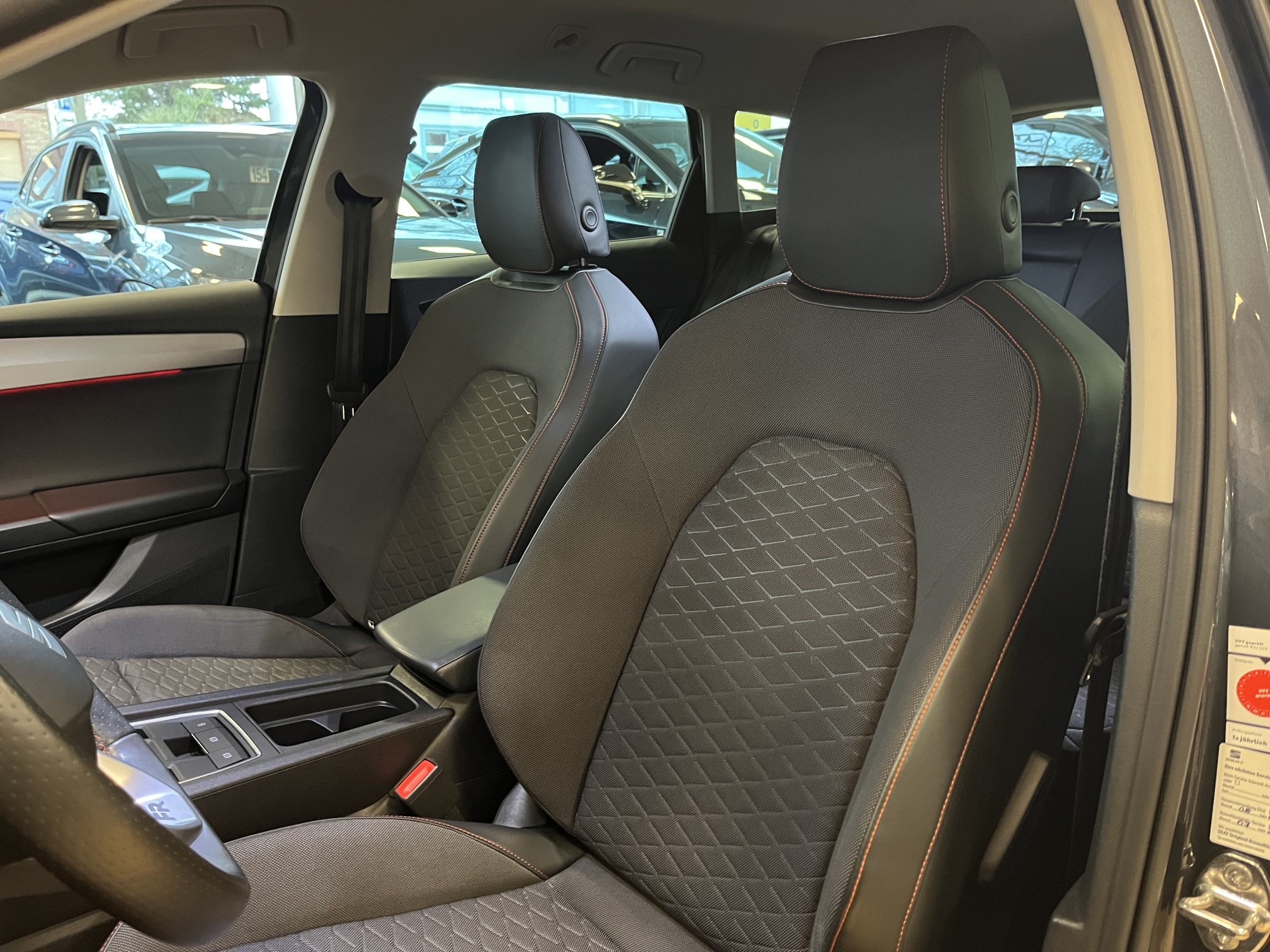 Pakete: Fahrassistenz-Paket MWinter-Paket Sonderausstattung: Anhängerkupplung (Kugelkopf mit elektr. Entriegelung, schwenkbar)Fzg. ohne Modell-SchriftzugGepäckraum-Abtrennung (Netz)Heckklappe/-Deckel elektr. betätigt (öffnen + schließen, sensorgesteuert)Induktionsladeschale für SmartphoneLadekabel mit SchukosteckerLadekabel mit Typ 2-Stecker (Mode 3)Metallic-LackierungSchließ-/Startsystem Kessy AdvancedSeitenairbag hintenSteckdose 230V Fahrassistenzsysteme: Fahrassistenz-System: Fahrprofilauswahl (SEAT Drive Profile)Fahrassistenz-System: MüdigkeitserkennungFahrassistenz-System: SpurhalteassistentFahrassistenz-System: Umfeldbeobachtungssystem (Front Assist) mit City-Notbremsfunktion Weitere Ausstattung: 6 LautsprecherAblagetasche an VordersitzlehnenAirbag Beifahrerseite abschaltbarAirbag Fahrer-/BeifahrerseiteAkustischer Fußgängerschutz (e-sound / AVAS)Anti-Blockier-System (ABS)Antriebs-Schlupfregelung (ASR)Audio-Navigationssystem mit Touchscreen-FarbbildschirmAußenspiegel elektr. verstell-, heiz- und anklappbar mit SpiegelabsenkungAußenspiegel grauBlinkleuchten LED in Außenspiegel integriertBluetooth-Schnittstelle mit Freisprecheinrichtung integriertBordcomputerDachrelingDoppeltonhornDurchladeeinrichtung (Mittelarmlehne hinten)Einparkhilfe hintenEinstiegsleisten beleuchtetElektron. Querdifferentialsperre (XDS)Elektron. Stabilitätskontrolle (ESC)Fensterheber elektrisch vorn + hinten mit KomfortschaltungGepäckraumabdeckung / RolloGetriebe 6-Gang Doppelkupplungsgetriebe DSGHandschuhfach beleuchtetHeckleuchten Voll-LED mit dynamischem Lichtband (Infinite Light)Hybrid 150 kW (Motor 1,4 Ltr. – 110 kW TSI)Innenraumlicht-Paket LEDIsofix-Aufnahmen für KindersitzKarosserie: 5-türigKlimaanlage Climatronic 3-ZonenKofferraumbeleuchtungKombiinstrument digital (Virtual Cockpit)Kopf-Airbag-SystemLendenwirbelstütze Sitz vorn links, verstellbarLendenwirbelstütze Sitz vorn rechts, verstellbarLenkrad (Sport/Leder) mit MultifunktionLenkrad mit Schaltwippen/-tastenLM-FelgenMobile Online Dienste SEAT ConnectNebelscheinwerfer LED mit AbbiegelichtNotrufsystemOtto-Partikelfilter (OPF)Parkbremse elektrisch mit Auto-Hold-FunktionRadioempfang digital (DAB+)Reifen-ReparatursetReifenkontroll-AnzeigeRücksitzlehne geteilt/klappbar (1/3 – 2/3)Rücksitzlehnen umklappbar mit Fernentriegelung im KofferraumSchadstoffarm nach Abgasnorm Euro 6dSchalt-/Wählhebelgriff LederScheinwerfer LEDSeitenairbagSeitenairbag vorn mitte (Central Airbag)Seitenscheiben hinten und Heckscheibe abgedunkeltServolenkung elektronisch gesteuert (Servotronic)Sitz vorn links höhenverstellbarSitz vorn rechts höhenverstellbarSitzbezug / Polsterung: StoffSport-Komfortsitze vornStart/Stop-AnlageSteckdose (12V-Anschluss) im Koffer-/LaderaumSteckdose (12V-Anschluss) vornStoßfänger FR-DesignTagfahrlicht LEDUSB-Schnittstelle vorn (2-fach, Typ C)Verzurrösen Koffer-/LaderaumWarnanlage für Sicherheitsgurt-SystemWegfahrsperre (elektronisch)Wärmeschutzverglasung Auf Wunsch bieten wir Ihnen Ihr Traumfahrzeug mit neuer HU/AU, neuer Inspektion, und Gebrauchtwagengarantie 12 Monaten an. Bitte überprüfen Sie die von DAT bezogene Ausstattungsliste. Es kann zu Abweichungen kommen. Die oben aufgeführte Ausstattungsliste dient lediglich der allgemeinen Identifizierung des Fahrzeuges und stellt keine zugesicherte Eigenschaft im kauf rechtlichen Sinne dar. Sie wird somit nicht Vertragsgegenstand und muss im Einzelnen vor Kaufvertragsabschluss von jedem Interessenten vor Ort am Fahrzeug kontrolliert werden. Irrtümer, Eingabefehler, Zwischenverkauf und Änderungen sind ausdrücklich vorbehalten. Auf Wunsch bieten wir Ihnen Ihr Traumfahrzeug mit neuer HU/AU, neuer Inspektion, und Gebrauchtwagengarantie 12 Monaten an. Bitte überprüfen Sie die von DAT bezogene Ausstattungsliste. Es kann zu Abweichungen kommen. Die oben aufgeführte Ausstattungsliste dient lediglich der allgemeinen Identifizierung des Fahrzeuges und stellt keine zugesicherte Eigenschaft im kauf rechtlichen Sinne dar. Sie wird somit nicht Vertragsgegenstand und muss im Einzelnen vor Kaufvertragsabschluss von jedem Interessenten vor Ort am Fahrzeug kontrolliert werden. Irrtümer, Eingabefehler, Zwischenverkauf und Änderungen sind ausdrücklich vorbehalten.